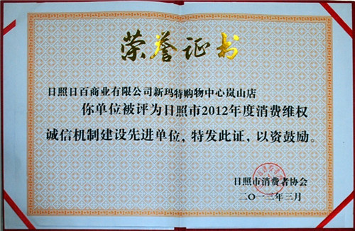 嵐山新瑪特——榮獲日照市第十屆消費(fèi)者滿意單位